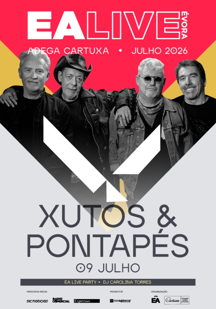 Depois de esgotar a edição de 2025, o EA LIVE ÉVORA regressa em 2026 ao cenário idílico da Adega Cartuxa, nos dias 09, 10, 11, 16, 17 e 18 de Julho, com Xutos & Pontapés, João Pedro Pais, Paulo Gonzo, Buba Espinho (ALENTEJO MAIOR com Átoa, Bandidos do Cante, Inês Gonçalves e Cantadeiras de Essência Alentejana) Carminho e Revenge of the 90’s, respetivamente.